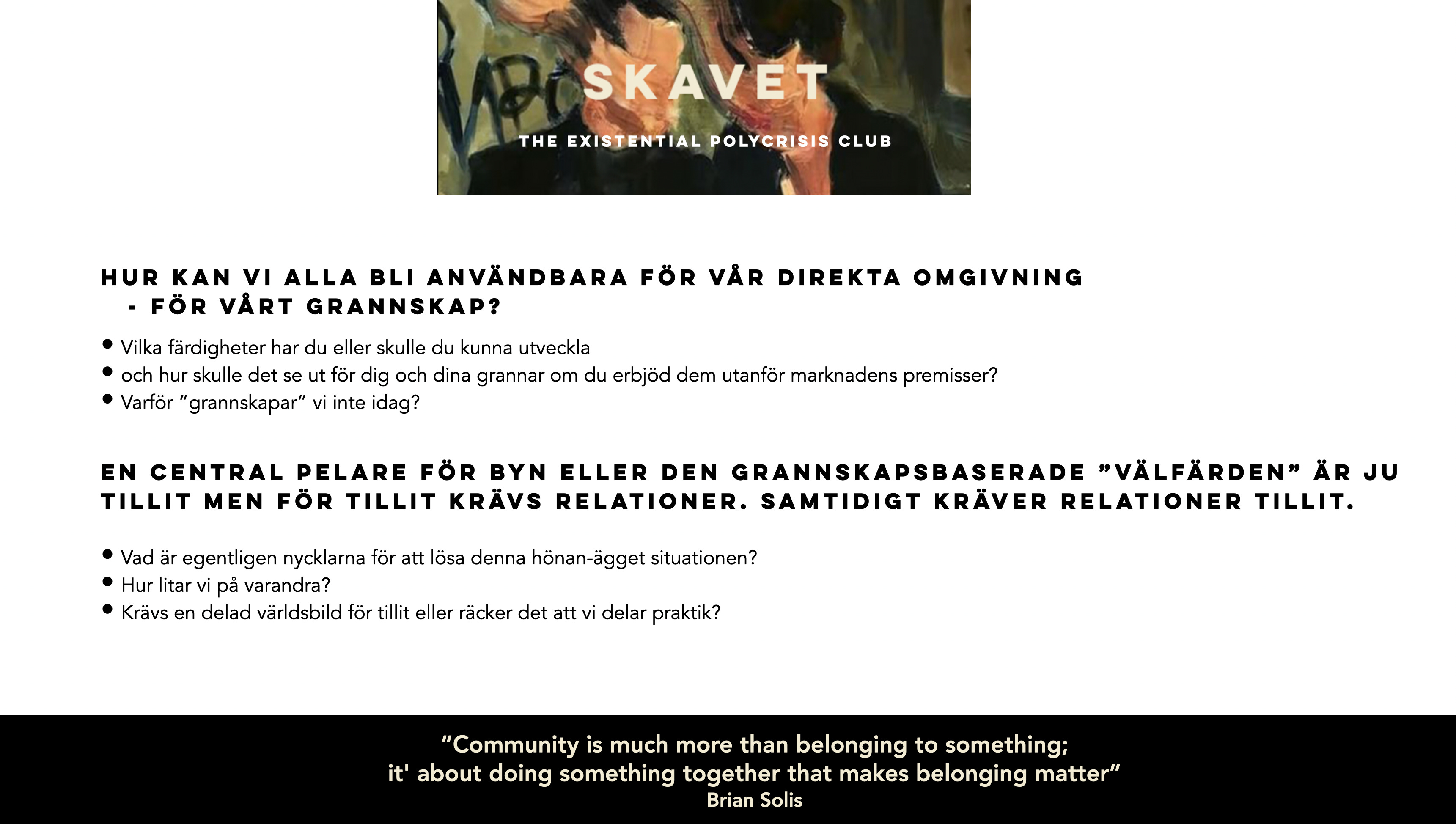 I Skavet som jag driver med Tove Blomgren, som är en existentiell polykrisklubb för vi ju dessa fördjupande samtal